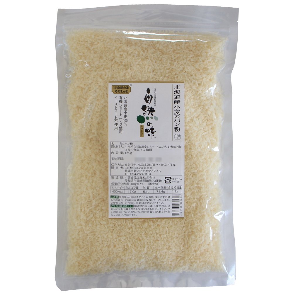 北海道産小麦100%のパン粉です。有機パーム油のショートニング使用。イーストフード不使用。フライには欠かせません。グラタン、サラダのアクセントにもどうぞ。