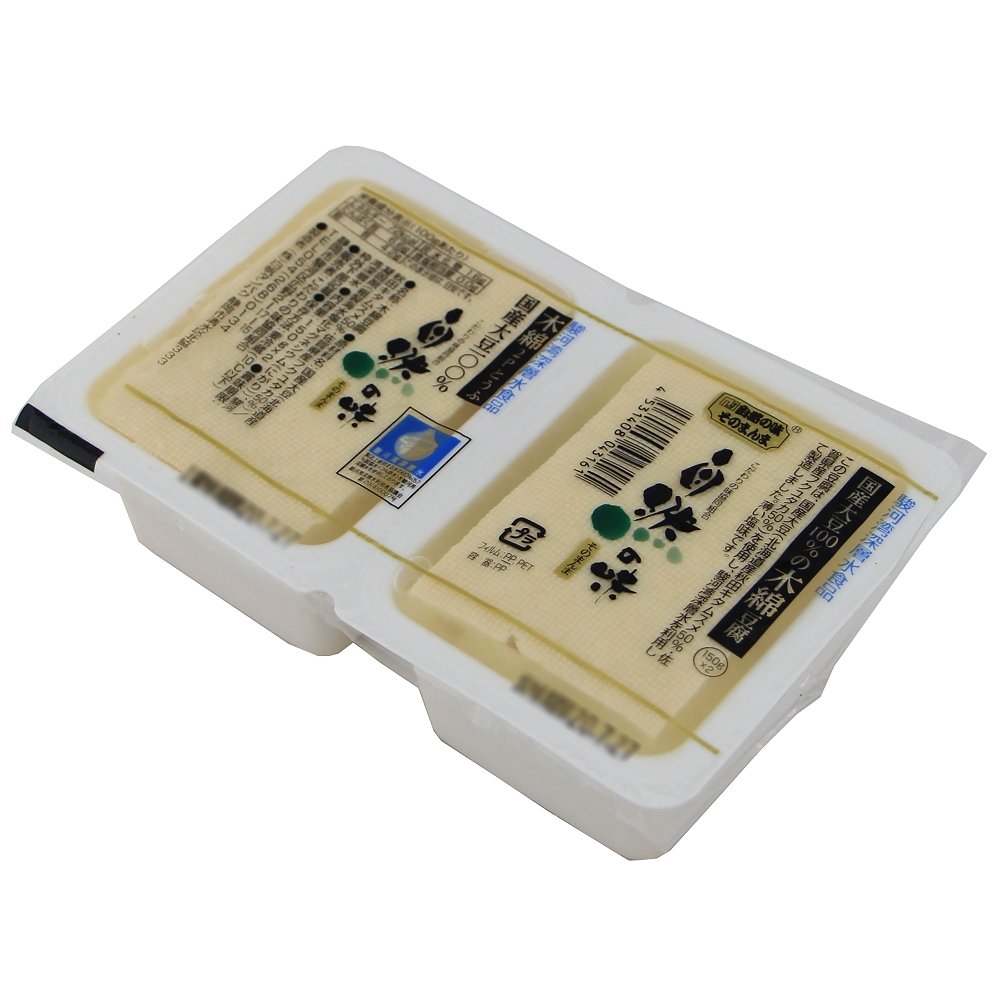 北海道産秋田キタムスメ大豆と北九州産フクユタカ大豆をブレンドした国産大豆100%の木綿豆腐です。挽き水に駿河湾深層水の脱塩水と原水を使用したおいしい豆腐です。