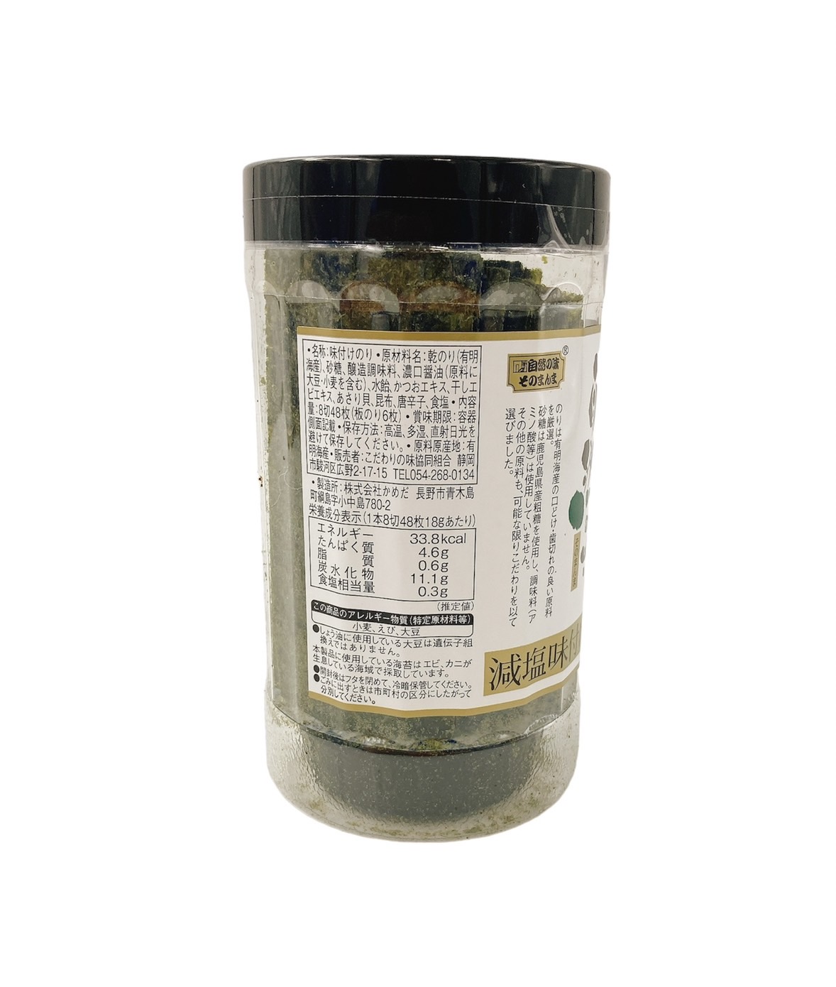 | 原材料 | 乾のり(国内産)、砂糖、醸造調味料、濃口醤油(原料に大豆、小麦を含む)、水飴、かつおエキス、干しエビエキス、あさり貝、昆布、唐辛子、食塩 |