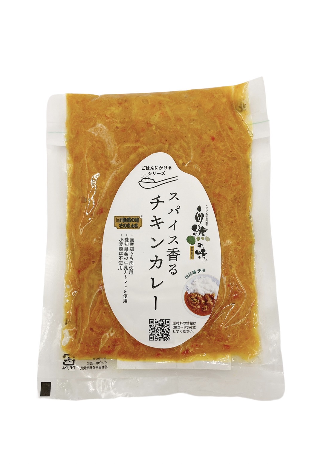 原材料鶏肉(国産)、玉ねぎ(国産)、牛乳(愛知県)、トマト(愛知県)、菜種油、カレーパウダー(一部に鶏肉・乳製分を含む)