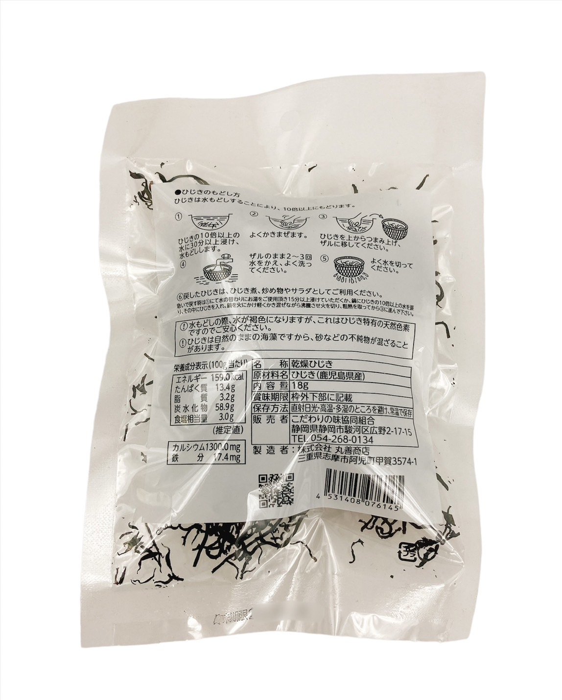 ブリやカンパチの漁場である栄養豊かな錦江湾の天然ひじき。無着色の素朴なおいしさ。食感良く、食べ応え抜群です。