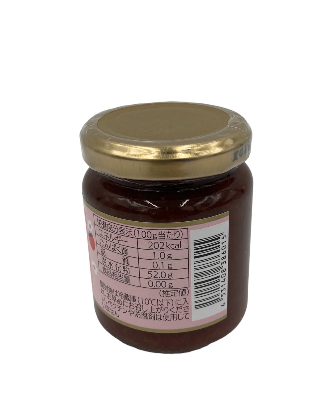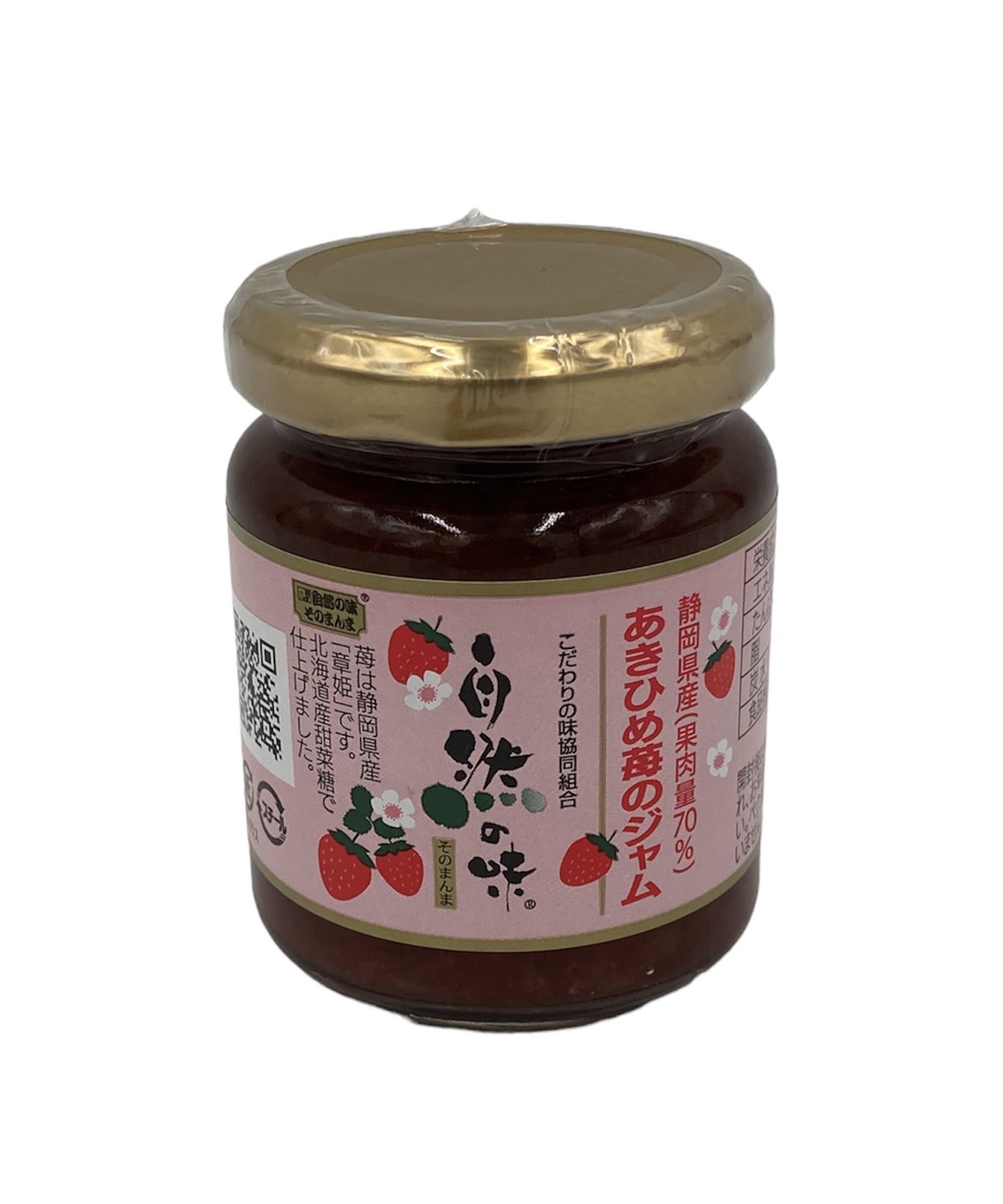 静岡県内で生産されているいちごの内、約8パーセントしか作られていない希少な品種・あきひめを使ったジャムです。生産地は静岡県に限定しています。甘みの強い品種なので、ヨーグルトやパンにぴったり。一回の仕込みで約80本しか作れない、大鍋でぐつぐつ煮込み、丁寧に作ったジャムです。静岡県内いちご生産量 紅ほっぺ80% きらぴ香11% 章姫8% その他1%県内産の章姫いちご使用です。