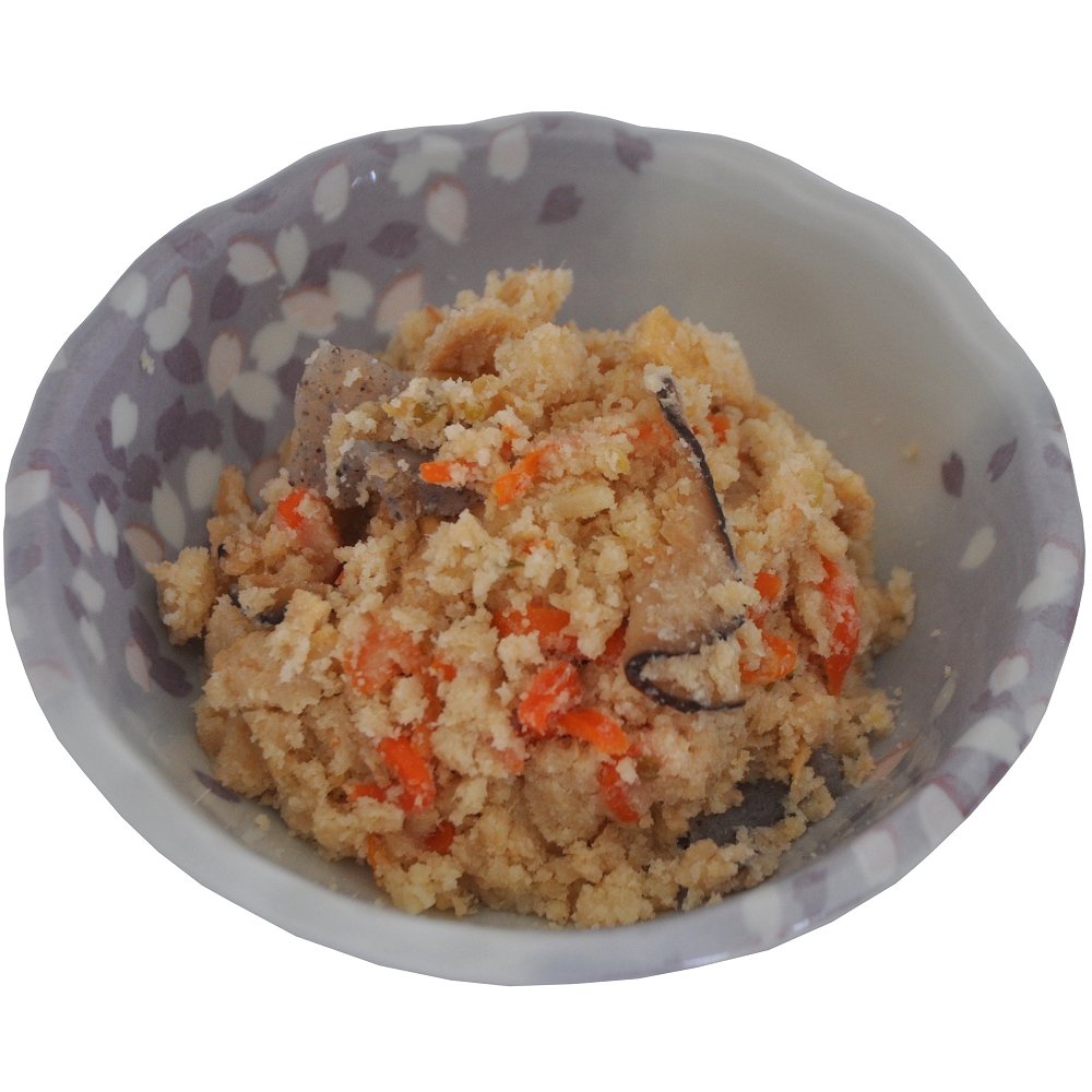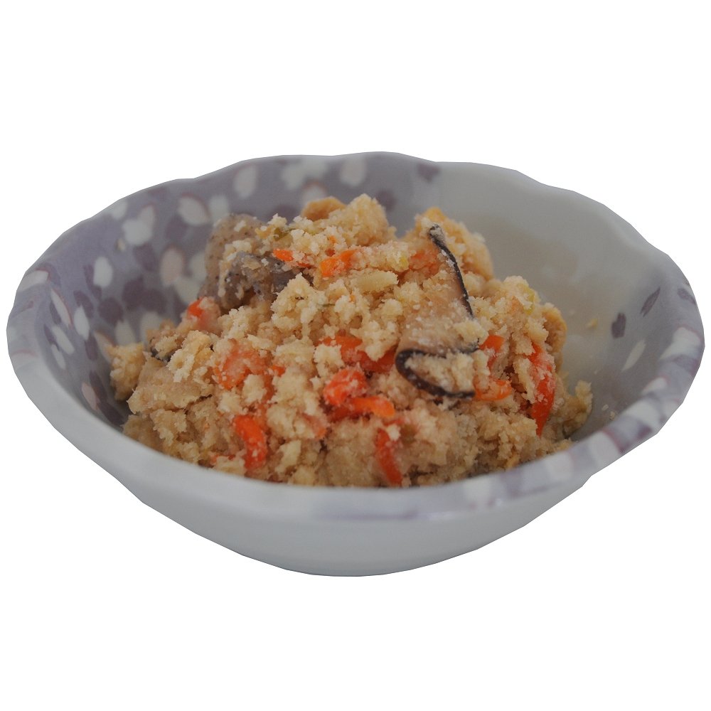 | 原材料 | おから(国産大豆)、人参、蒟蒻、砂糖、小麦醸造調味料(小麦、食塩等)、竹の子、油揚げ(大豆、菜種油)、椎茸、葱、味醂、鰹節/貝殻焼成カルシウム(蒟蒻用凝固剤)、豆腐用凝固剤(塩化マグネシウム) |