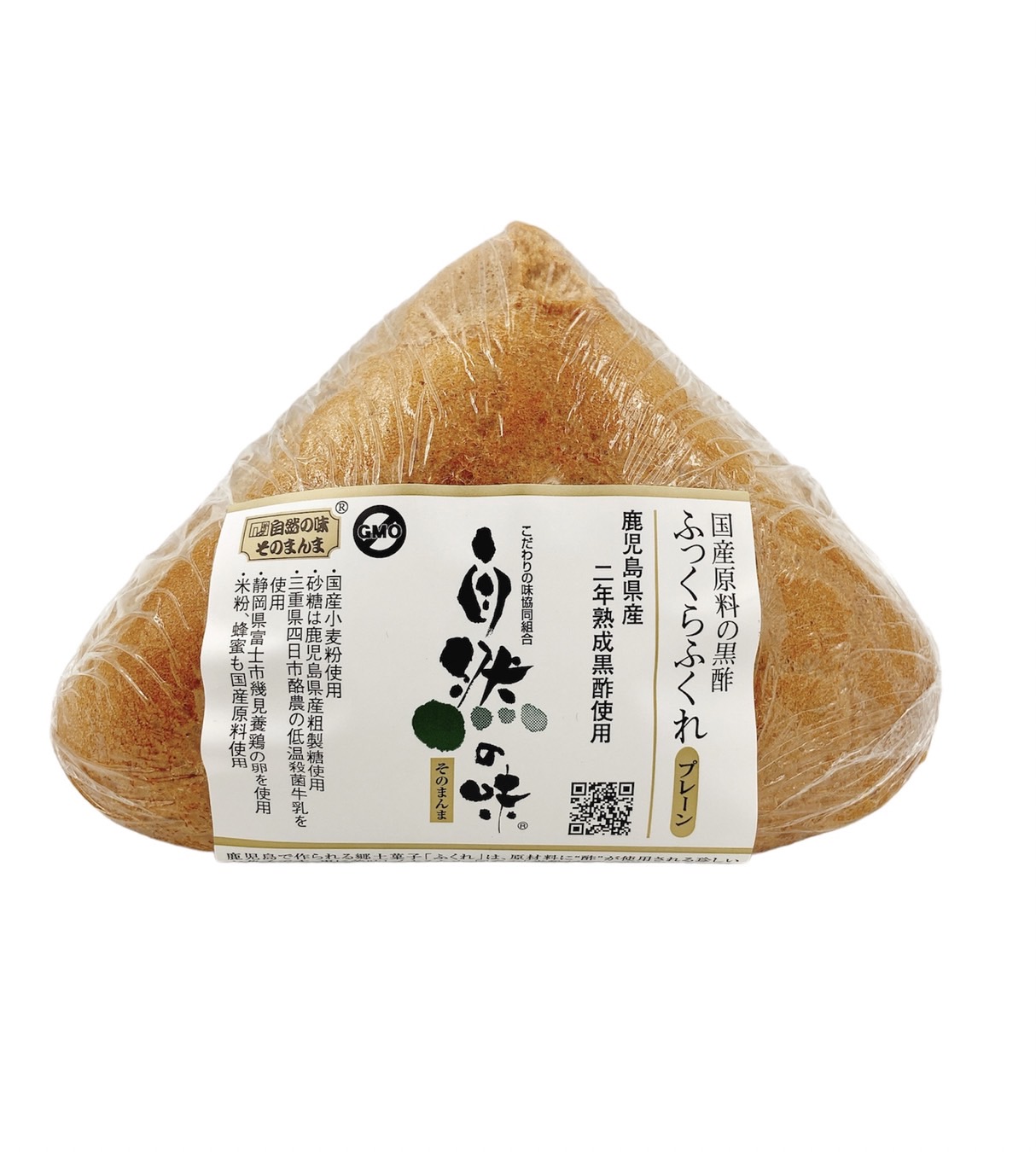 小麦粉はもちろん国産小麦。それに二年熟成で大事に育てた本場鹿児島の黒酢、卵は遺伝子組替飼料を全く使わない純国産鶏の鶏卵、低温殺菌牛乳、鹿児島県産粗製糖を使い、さらに美味しくする為に、国産米粉をブレンドしました。