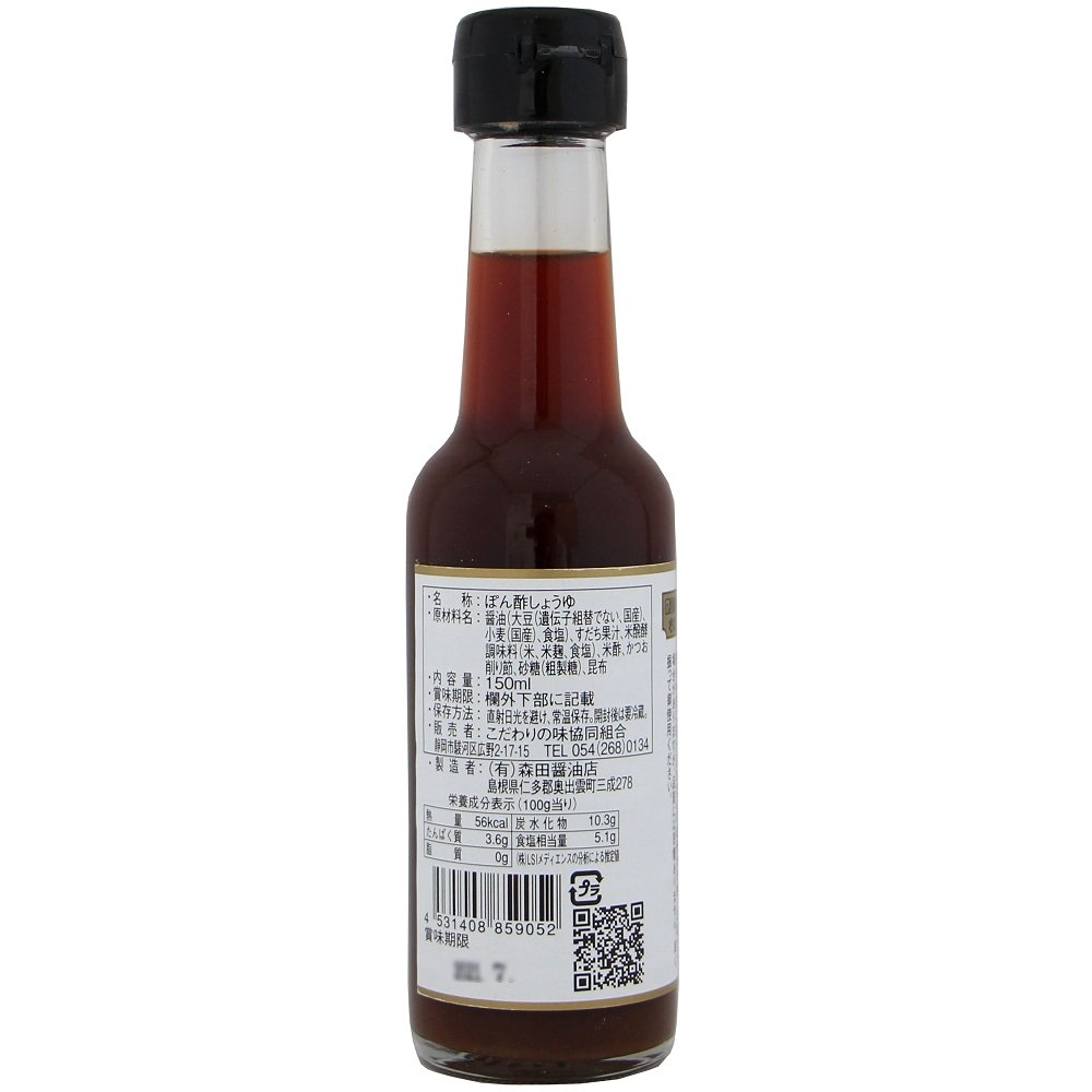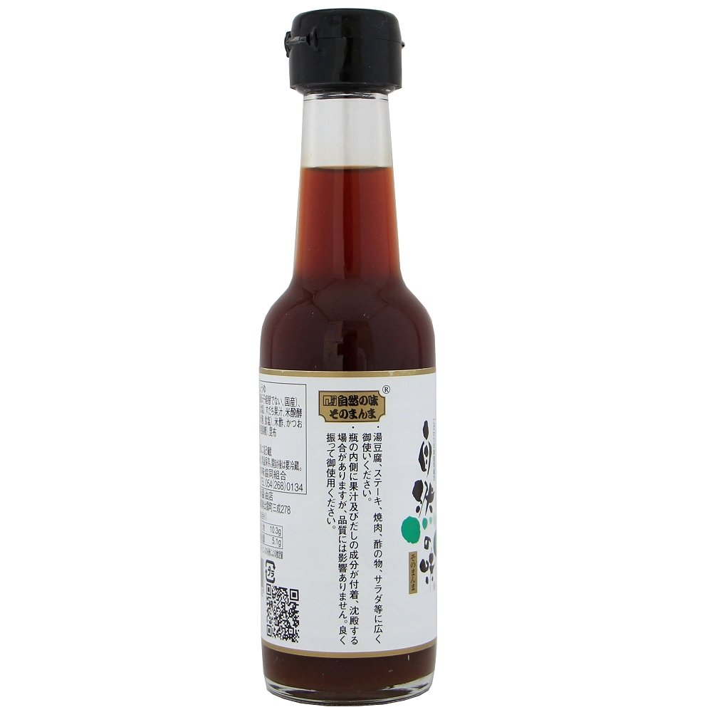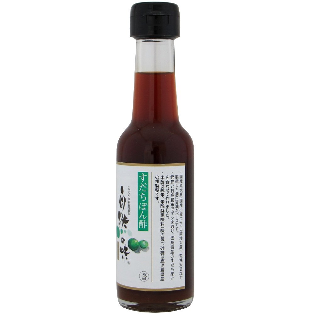| 原材料 | 醤油(大豆(国産))、小麦(国産)、食塩)、すだち果汁(徳島県)、米醗酵調味料(米、米麹、食塩)(国産)、米酢(国産)、かつお削り節(鹿児島県)、砂糖(粗製糖)(鹿児島県)、昆布 |