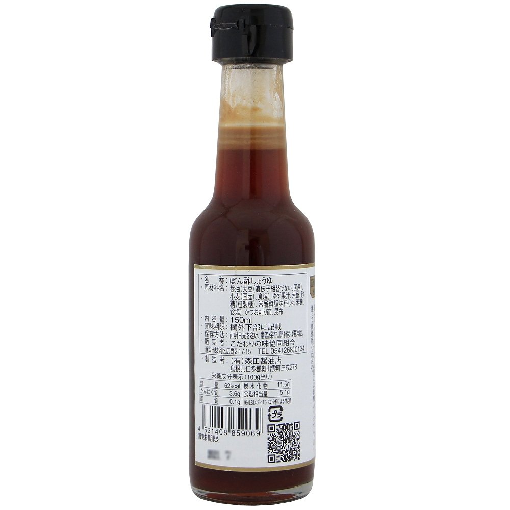 | 原材料 | 醤油(大豆(国産))、小麦(国産)、食塩)、ゆず果汁、米酢(国産)、砂糖(粗製糖)(鹿児島県産)、米醗酵調味料(米、米麹、食塩)(国産)、かつお削り節(鹿児島県)、昆布(北海道・日高産) |