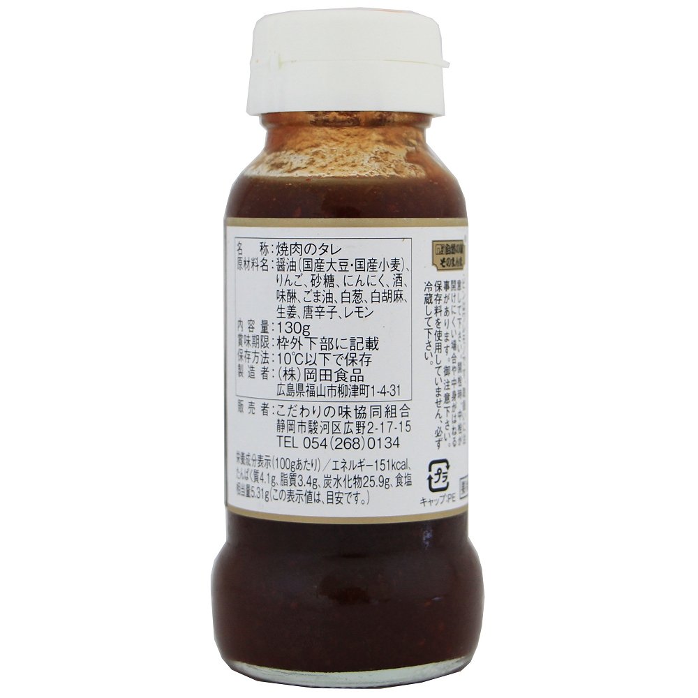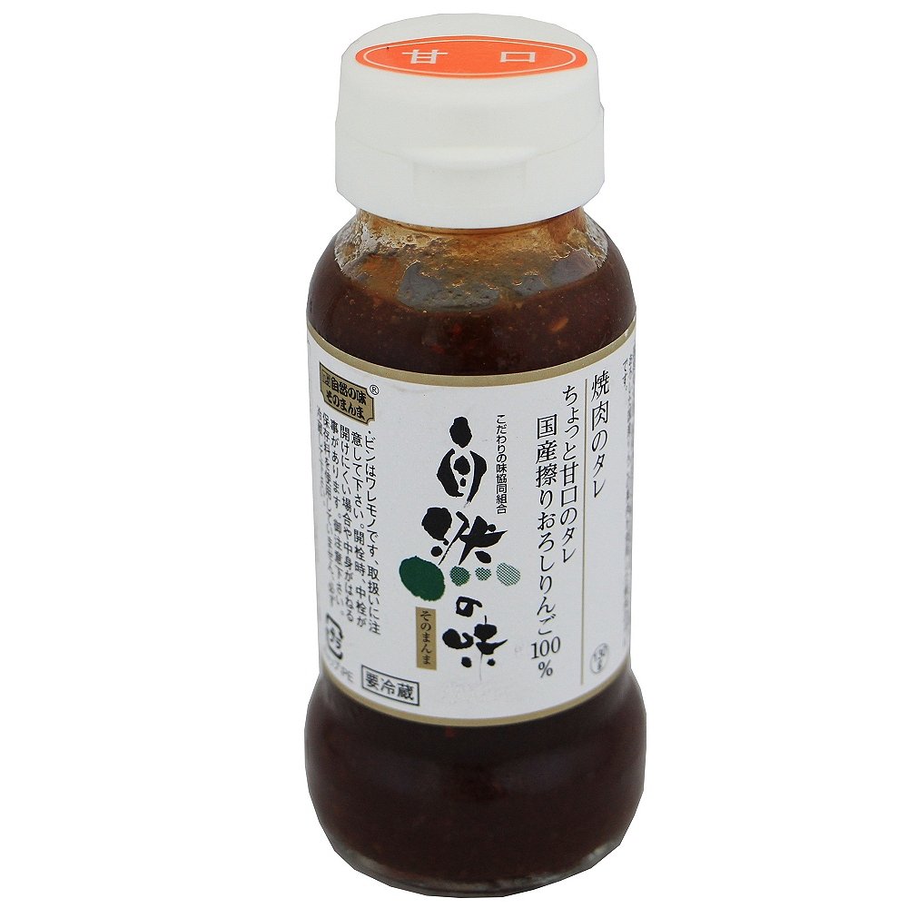 | 原材料 | 丸大豆醤油(自社製)、りんご(青森・長野県他)、粗糖(鹿児島県種子島産)、にんにく(青森県)、純米酒、純米本みりん、ごま油、白ねぎ(鳥取県、大分県)、白ごま(鹿児島県)、生姜(高知県)、唐辛子(韓国)、レモン(広島県他) |