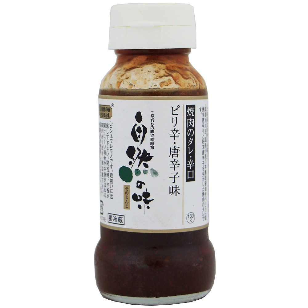 国産丸大豆醤油をベースに粗挽き唐辛子と粉末唐辛子を独自の配合でブレンド使用した無添加だれです。