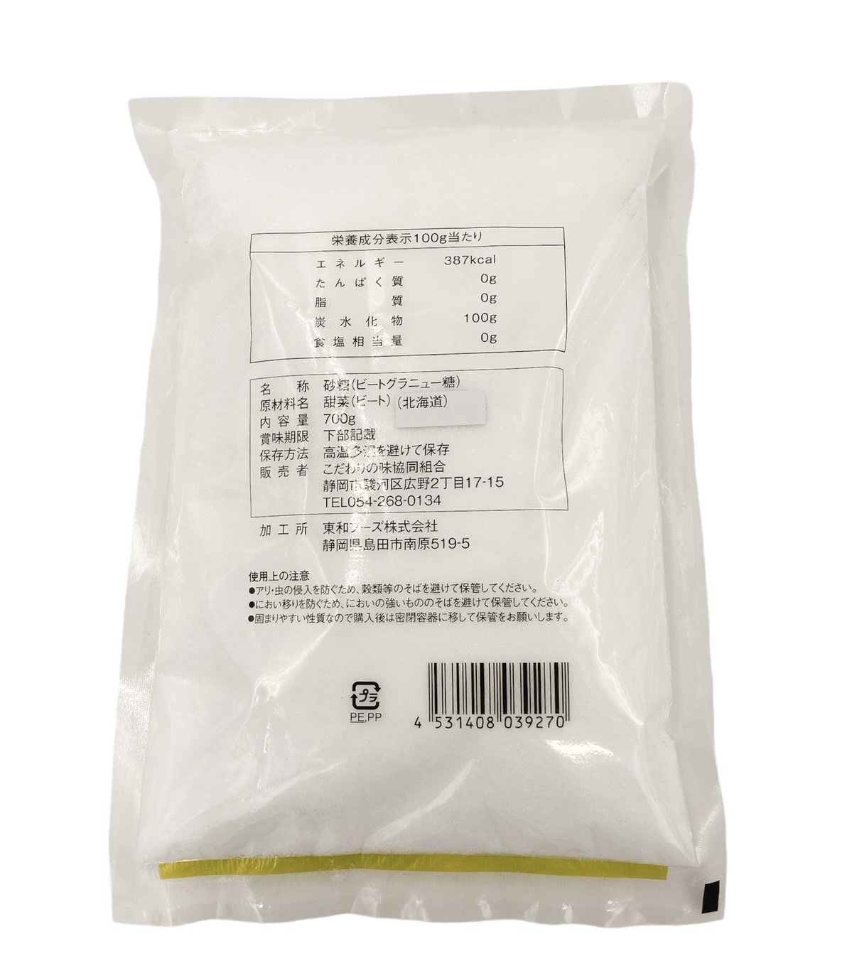 北海道産てんさい(ビート)を原料にしたグラニュー糖です。