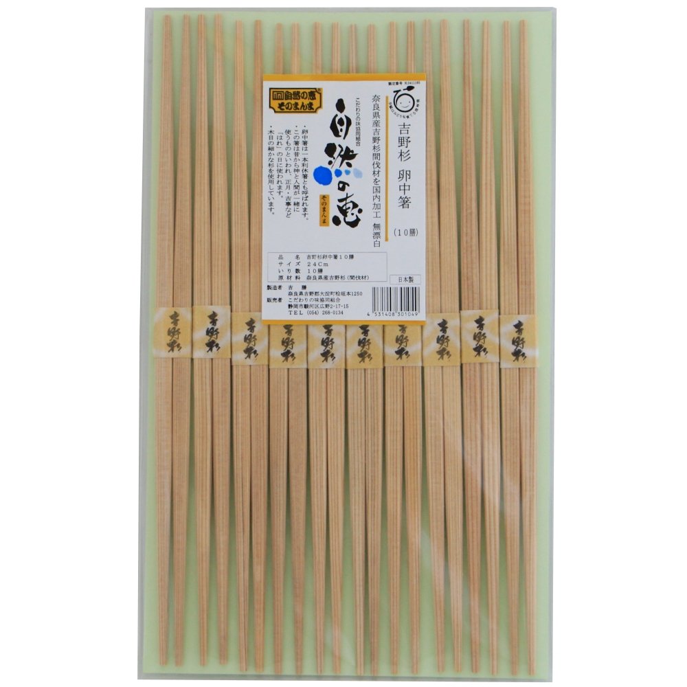 奈良県産吉野杉間伐材を国内加工 無漂白卵中箸は一本利休箸とも呼ばれます。