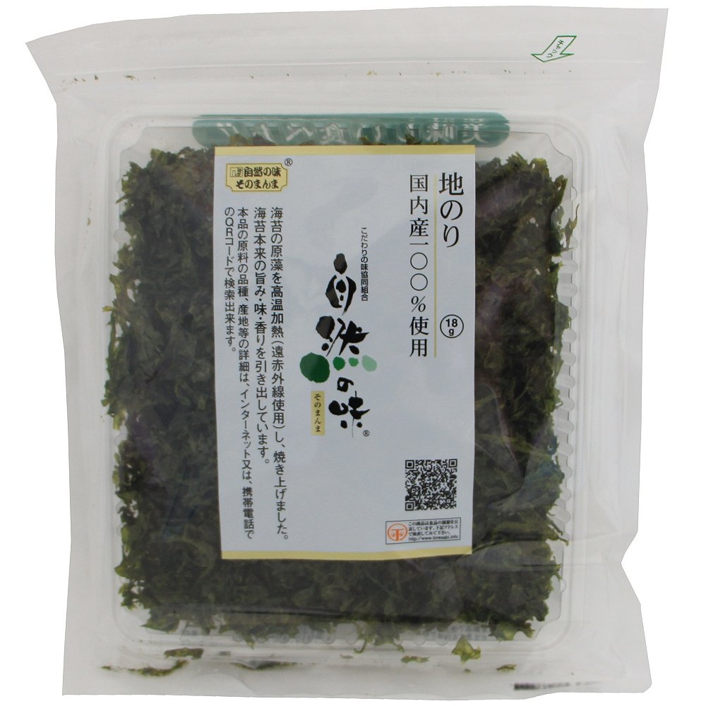 天然岩のりと同じ原藻の甘のりを高温加熱(遠赤外線使用)し、焼き上げた国内産100%の地のり!