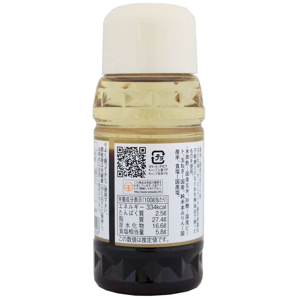 国産、非遺伝子組換え原料のみを使用したドレッシングです。炒めたたまねぎの甘さとアミノ酸含有量の多い黒酢のまろやかな酸味がマッチした香りの良いドレッシングです。