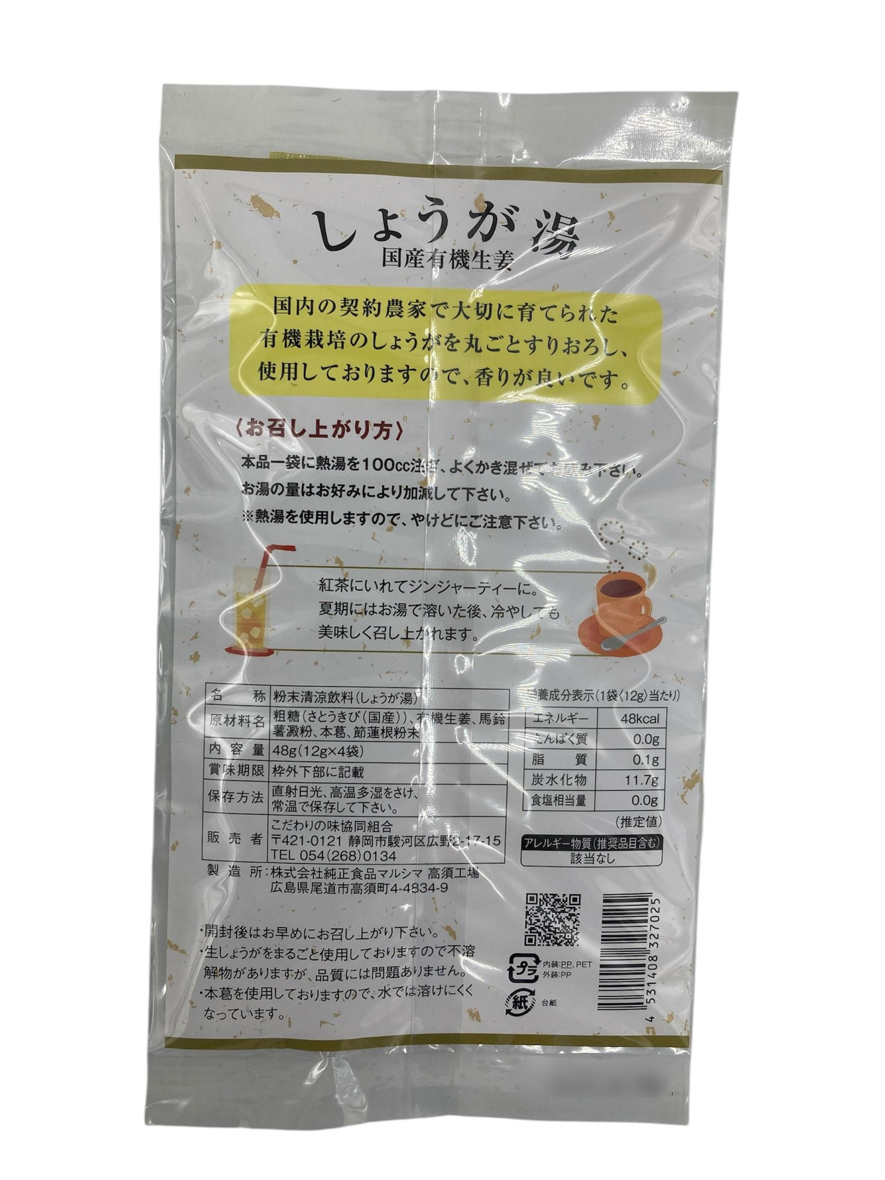 | 原材料 | 粗糖、有機生姜、馬鈴薯澱粉、本葛、節蓮根粉末 |