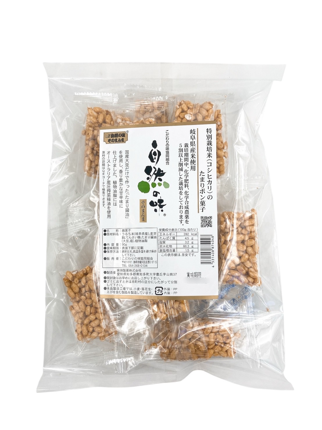 | 原材料 | うるち米(岐阜県産)、麦芽糖、てんさい糖(遺伝子組換でない)、たまり醤油(大豆、遺伝子組換でない)、植物油脂 |