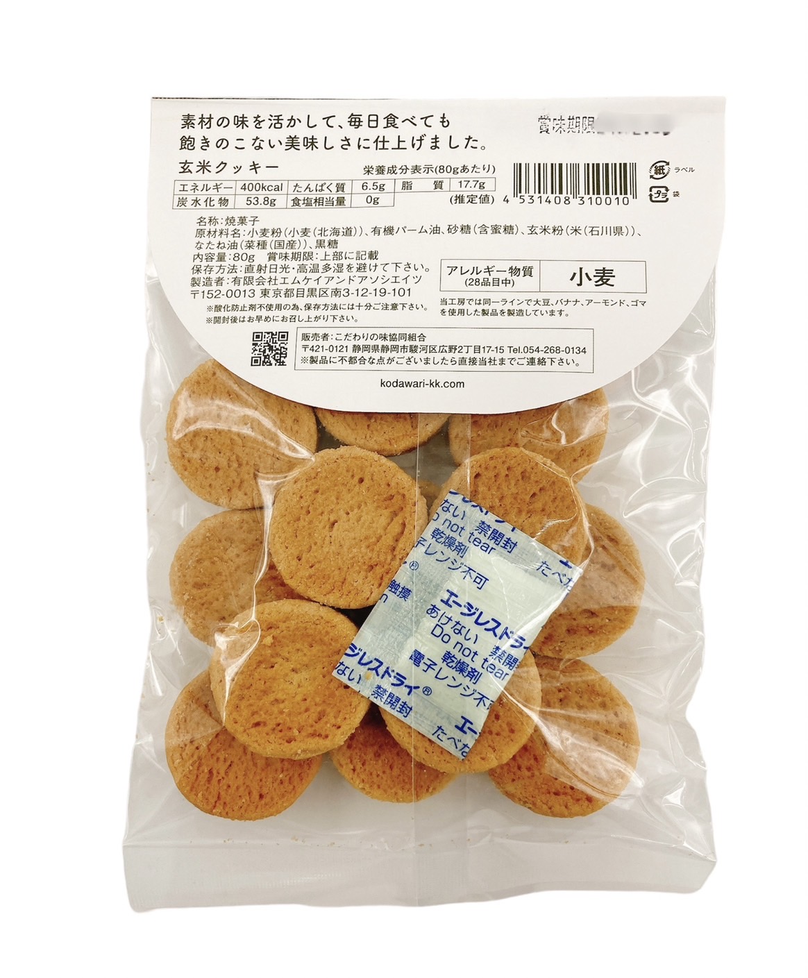| 原材料 | 小麦粉(小麦(北海道))、有機パーム油、砂糖(含蜜糖)、玄米粉(玄米(石川))、なたね油(菜種(国産))、黒糖(沖縄) |