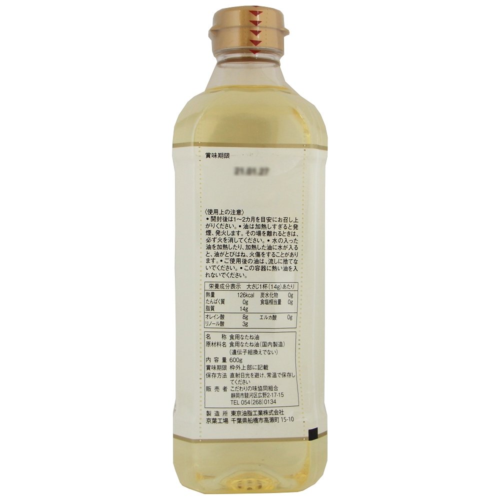 ●販売終了 圧搾しぼり 菜種油 600g