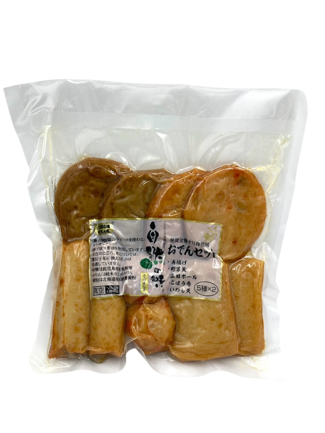| 原材料 | ●角揚:魚肉(たら)、馬鈴薯澱粉、粗糖、みりん、天日塩、鰹節エキス、植物油(米油)●野菜天:魚肉(たら)、玉ねぎ、人参、馬鈴薯澱粉、粗糖、ごぼう、みりん、天日塩、鰹節エキス、植物油(米油)●ごぼう巻:魚肉(たら)、ごぼう、馬鈴薯澱粉、粗糖、みりん、天日塩、鰹節エキス、植物油(米油)●五目ボール:魚肉(たら)、玉ねぎ、人参、馬鈴薯澱粉、粗糖、ごぼう、みりん、食塩、鰹節エキス、植物油(米油)●いわし天:魚肉(いわし、ぐち、たら)、玉ねぎ、小麦蛋白、粗糖、馬鈴薯澱粉、天日塩、みりん、鰹節エキス、植物油(米油) |
