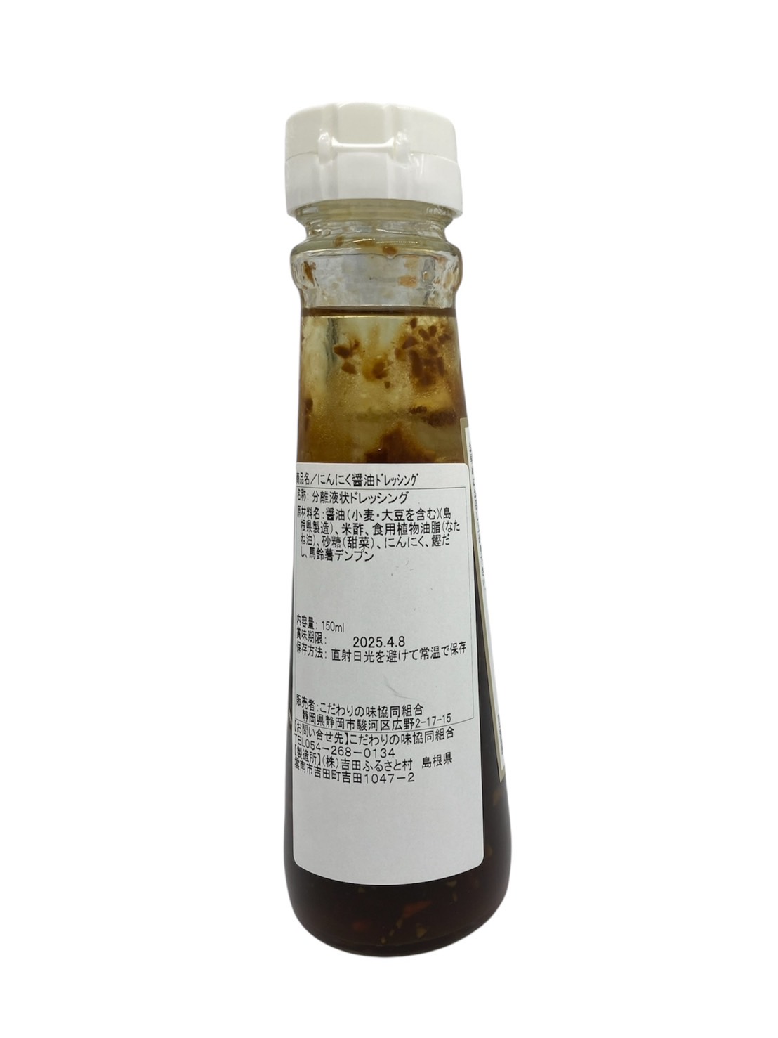 森田醤油さんの国産丸豆醤油に吉田町産のにんにくをたっぷり使ったドレッシングです。