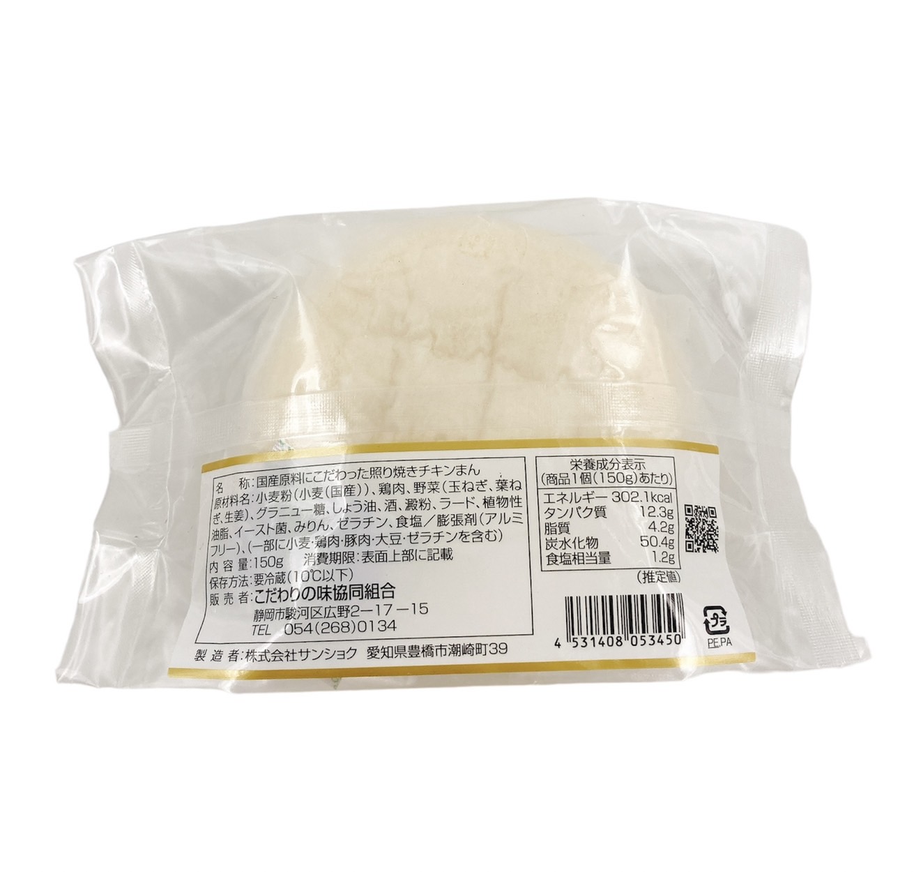 | 原材料 | 小麦粉(小麦(国産))、鶏肉、野菜(玉葱、葉ねぎ、生姜)、グラニュー糖、しょう油、酒、澱粉、ラード、植物性油脂、イースト菌、みりん、ゼラチン、食塩/膨張剤(アルミフリー)(一部に小麦・鶏肉・豚肉・大豆・ゼラチンを含む) |