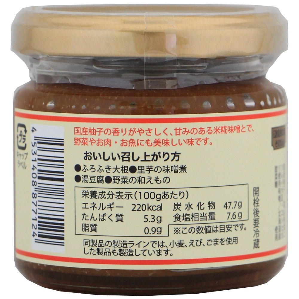 原材料みそ(大豆を含む)、砂糖(甜菜糖)、ゆず、米発酵調味料
