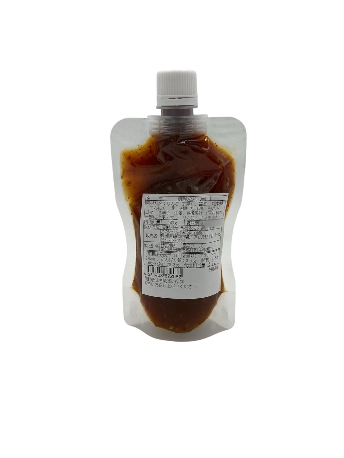 | 原材料 | りんご(国産)、醤油、粗製糖、にんにく、酒、味醂、胡麻油、白ネギ、ゴマ、唐辛子、生姜、柑橘果汁(原材料の一部に小麦・大豆・りんご・ゴマを含む) |