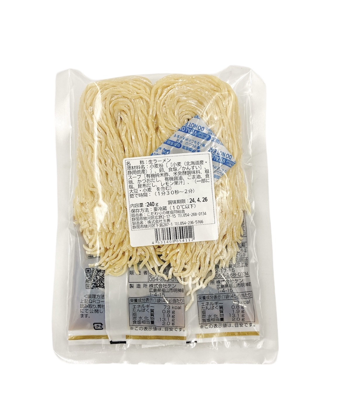 | 原材料 | めん:小麦粉[〔小麦(北海道産・静岡県産)〕、卵、食塩/かんすい] スープ:[有機純米酢、米発酵調味料、粗糖、かつおだし、有機醤油、ごま油、食塩、昆布だし、レモン果汁](一部に小麦・大豆・ごまを含む) |
