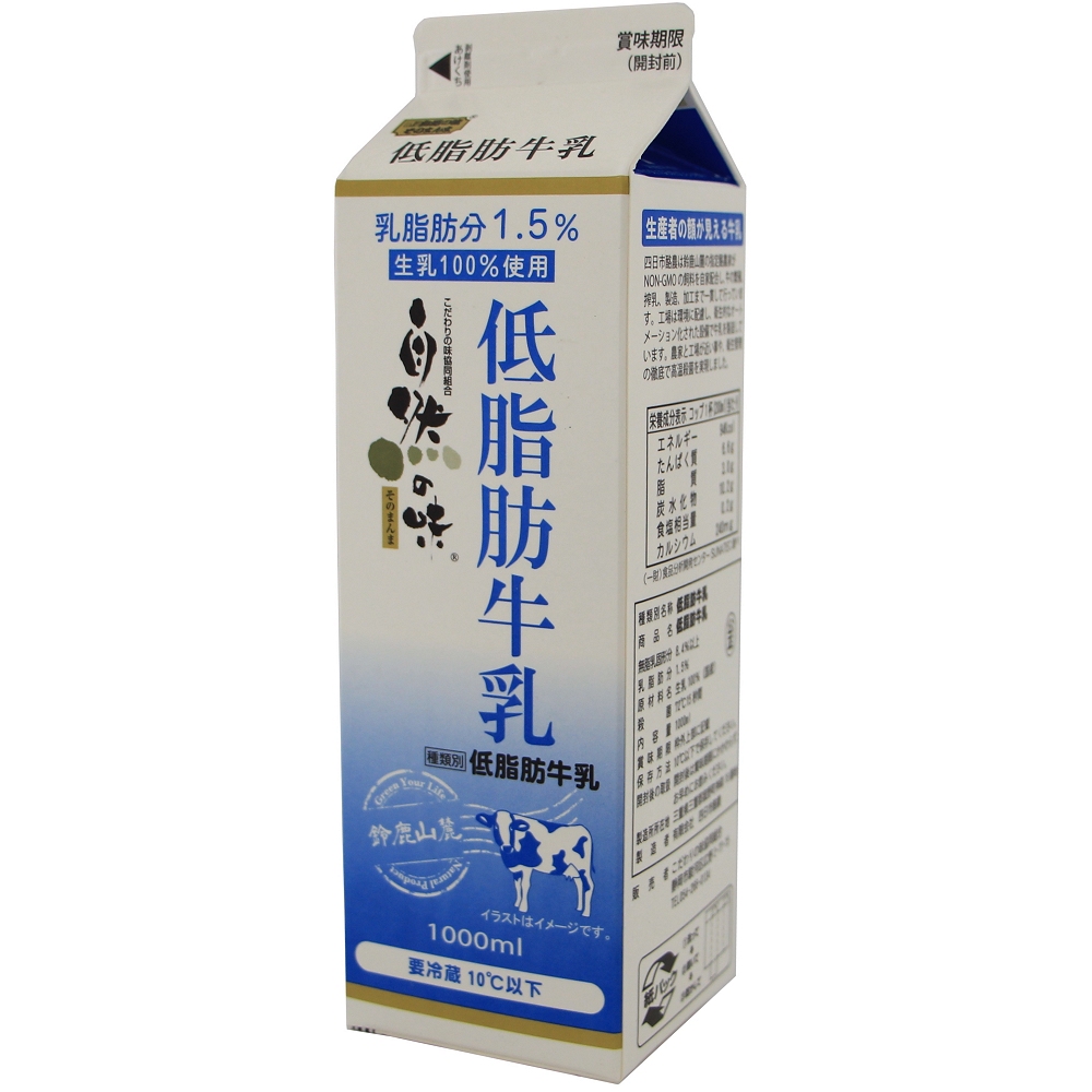 美味しく、安心して牛乳が飲みたいけど、脂肪分が気になる方にお勧めの、脂肪分を58%カットした低脂肪牛乳です。原材料は遺伝子組換え分別生産流通管理済みの飼料で、飼育された乳牛の生乳を100%使用。乳飲料とは全く異なります。乳脂肪分を1.5%にした低脂肪乳です。(温度帯72℃15秒間/高温殺菌)生乳は低温殺菌牛乳に利用できる、衛生面の徹底された新鮮な生乳を使用しています。コクとミルク感を味わっていただける商品です。