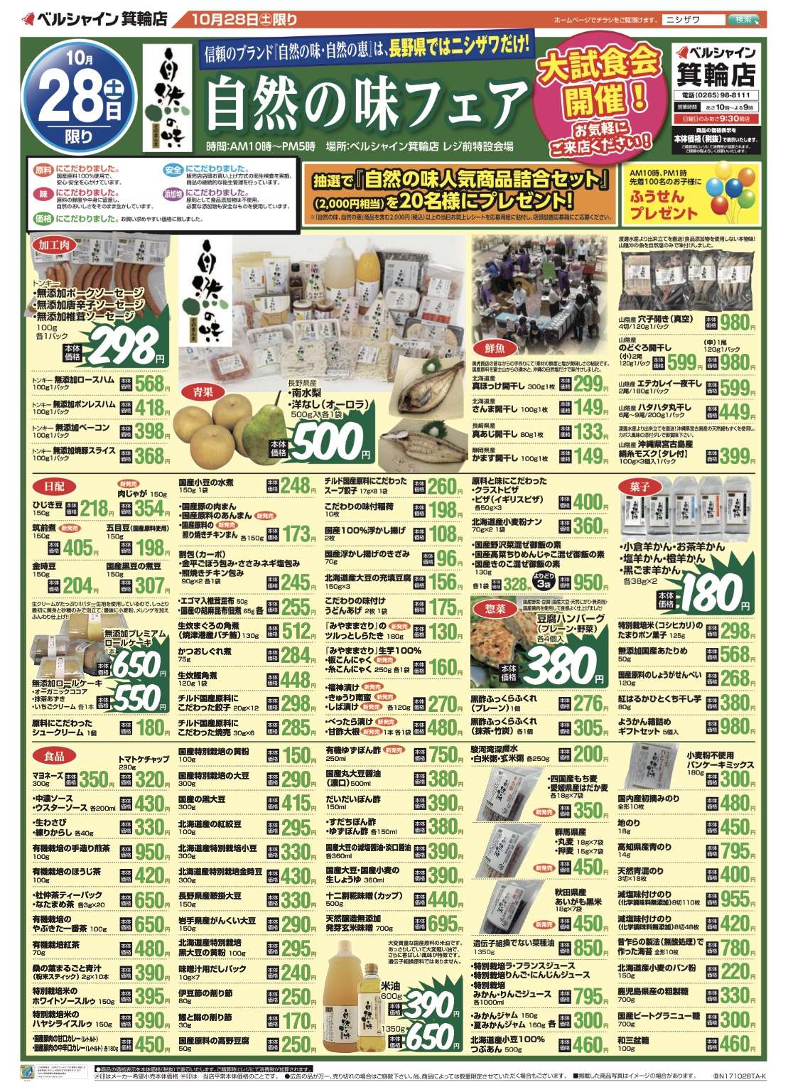 自然の味認定メーカーが27社がベルシャイン箕輪店様にて試食説明会をいたします。